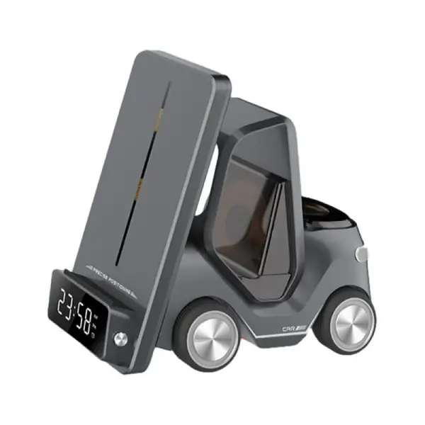 illumination dans les espaces sombres, parfait pour une utilisation nocturne. Le chargeur de montre de 2,5 W garde votre smartwatch chargée et accessible, faisant de lui une solution tout-en-un pour vos besoins de charge quotidiens. Conçu avec une surface antidérapante, ce chargeur sans fil 5 en 1 Green Lion Forklift garantit que vos appareils restent en place en toute sécurité pendant la charge, réduisant ainsi le risque de glissements ou de chutes accidentelles. Le chargeur sans fil 5 en 1 Green Lion Forklift n’est pas seulement un accessoire pratique ; c’est un ajout élégant à tout espace, alliant fonctionnalité et design moderne pour améliorer votre expérience de charge.